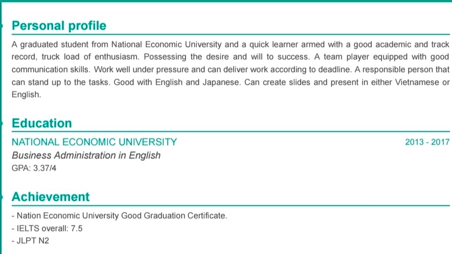 - Thành thạo 3 ngoại ngữ: Anh, Trung, Nhật. - Tư duy logic mạnh mẽ và giải quyết vấn đề hiệu quả. - Khả năng thiết kế trực quan và làm việc sáng tạo. - Sẵn sàng làm việc trong môi trường đa văn hóa.