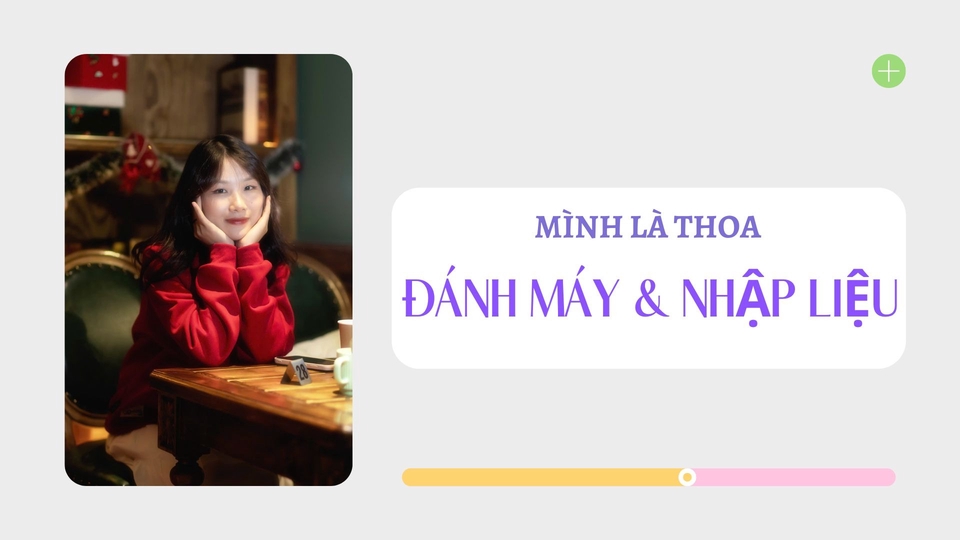 Xin chào! Mình là Thoa, mình làm dịch vụ về đánh máy, nhập liệu với tốc độ nhanh và chính xác. Thành thạo Word, Google Docs và Excel. Mình sẽ hoàn thành dealine hiệu quả và đúng hạn. Cảm ơn các bạn đã quan tâm