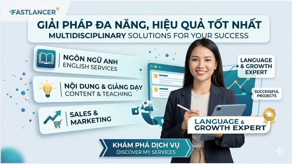 Tôi là Freelancer có nền tảng Ngôn ngữ Anh kết hợp tư duy Sales & Marketing thực chiến. Kinh nghiệm từ giảng dạy và sáng tạo nội dung giúp tôi có kỹ năng truyền đạt sắc bén, thấu hiểu tâm lý khách hàng và khả năng thích nghi nhanh với mọi yêu cầu dự án. Cam kết mang lại giá trị thực thông qua ngôn ngữ và tư duy tối ưu kết quả.