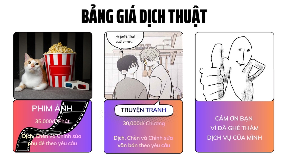 Dịch truyện tranh; phụ đề phim Anh-Việt.