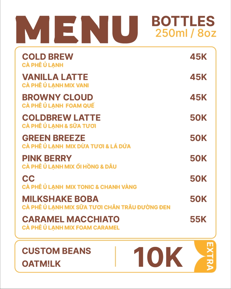 ₫2,0 triệuThiết kế menu 4–6 trang (hoặc full system) Concept riêng, kết hợp màu sắc – hình ảnh theo DNA thương hiệu Kèm mockup menu (in, để bàn, digital) File in ấn + file online + guideline màu sắc/font