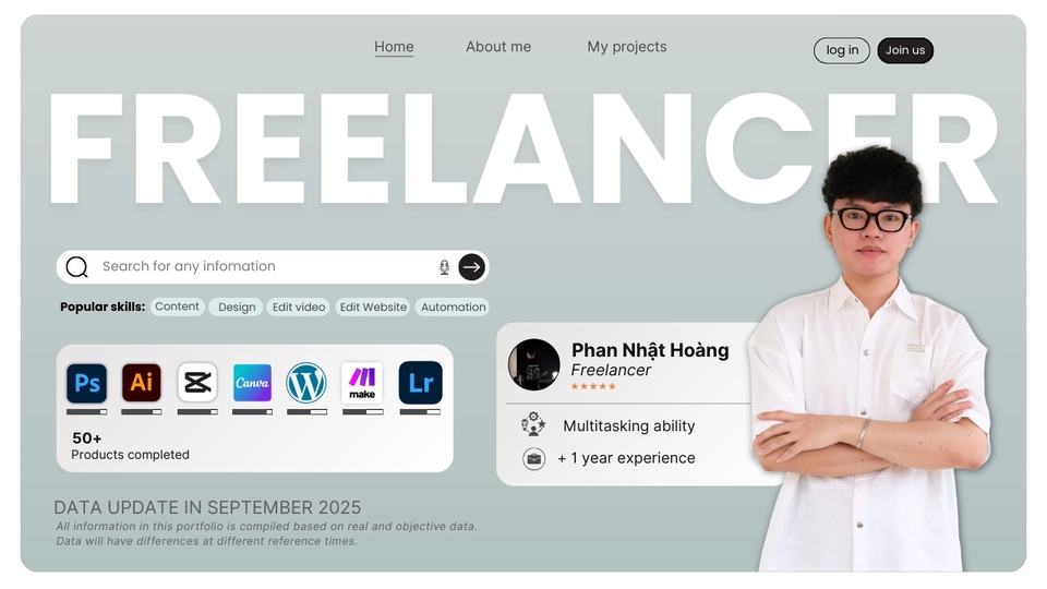 Freelancer Marketing trẻ đầy nhiệt huyết, hơn 1 năm kinh nghiệm triển khai chiến dịch đa kênh. Thành thạo công cụ Adobe & Digital Marketing, tối ưu quảng cáo và sáng tạo nội dung giúp thương hiệu tiếp cận đúng khách hàng và tăng hiệu quả kinh doanh