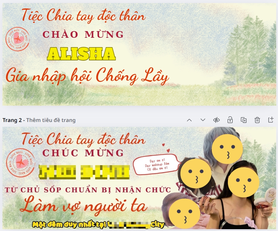 Bạn đang tìm 1 người giúp bạn thiết kế ra nhưng ấn phẩm với idea vui nhộn như : - Poster chia tay đứa bạn độc thân lâu năm chống lầy (Size in 60*80cm,....) - Giấy khen tặng lầy lội cho đồng nghiệp công ty những dịp lễ lộc (Size A4, A5,...) - Vân vân và mây mây HÃY ĐỂ MÌNH GIÚP BẠN TẠO NÊN NHỮNG KHOẢN KHẮC VUI NHỘN ĐÁNG NHỚ ẤY NHÉ Đừng ngại liên hệ với mình để xem các hình ảnh thực tế vui nhộn này nhé