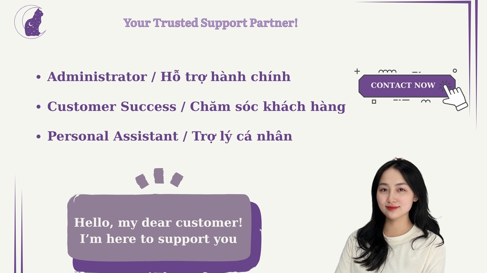 📌 Phạm Vi Công Việc Hỗ trợ hành chính – văn phòng: nhập liệu, soạn thảo văn bản, quản lý hồ sơ, sắp xếp lịch làm việc, xây dựng & đưa quy trình vào vận hành bộ máy. Hỗ trợ nhân sự cơ bản: đăng tin tuyển dụng, sàng lọc CV, theo dõi hợp đồng, chấm công – tính lương đơn giản. Chăm sóc khách hàng: trả lời email, tin nhắn, hỗ trợ giải đáp thắc mắc cơ bản. Trợ lý cá nhân: nhắc lịch, hỗ trợ công việc hàng ngày, tìm kiếm thông tin & các công việc khác theo yêu cầu. 📌 Kinh Nghiệm & Chuyên Môn Hơn 3 năm kinh nghiệm trong lĩnh vực hành chính – nhân sự & lễ tân văn phòng. Thành thạo MS Office, Google Workspace, quản lý dữ liệu & sắp xếp công việc khoa học. Kiến thức cơ bản về C&B và tuyển dụng. Tiếng Anh cơ bản (đọc, viết, trao đổi email). Phong cách làm việc: nghiêm túc, tận tâm, cẩn thận & có trách nhiệm. 📌 Quy Trình Làm Việc Trao đổi & thống nhất yêu cầu công việc. Thực hiện theo tiến độ, cập nhật thường xuyên để khách hàng nắm rõ. Gửi kết quả & điều chỉnh theo phản hồi. Bàn giao sản phẩm cuối cùng, đảm bảo đúng cam kết. 📌 Yêu Cầu Từ Người Thuê Cung cấp thông tin, tài liệu cần thiết. Thống nhất rõ phạm vi & thời hạn trước khi bắt đầu. 📌 Điều Khoản & Điều Kiện Không nhận công việc liên quan đến cờ bạc, tài chính bất hợp pháp hoặc nội dung nhạy cảm.
