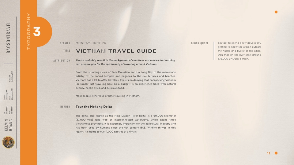 Với 9 năm kinh nghiệm & là thế hệ chuyển giao giữa Gen Y và Gen Z, cũng là thế hệ trải qua quá trình chuyển đổi số mạnh mẽ của các nền tảng Social Media, tôi có đủ hành trang cần thiết để sẵn sàng đồng hành cùng bạn trong những dự án từ cơ bản đến phức tạp. Lĩnh vực chuyên môn: Visual Communication, thiết kế, dựng phim, quay phim.