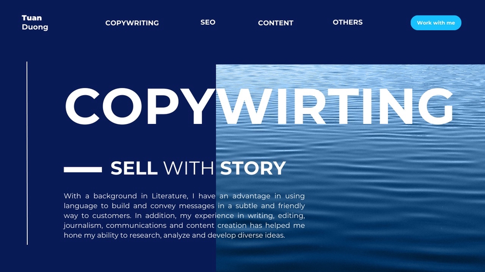 Mình là một copywriter với khả năng biến ý tưởng thành ngôn từ thuyết phục, giàu cảm xúc và phù hợp với từng đối tượng khách hàng. Mình có kinh nghiệm sáng tạo nội dung đa dạng: từ bài viết truyền thông, quảng cáo, social media, đến kịch bản video và landing page. Điểm mạnh của mình là khả năng nắm bắt insight, triển khai thông điệp rõ ràng, súc tích nhưng vẫn tạo dấu ấn riêng. Mình hướng đến việc mang lại những câu chữ không chỉ thu hút, mà còn thúc đẩy hành động và gia tăng giá trị cho thương hiệu.