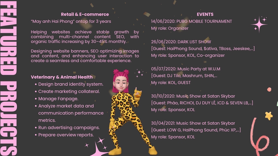 8 năm theo đuổi nghệ thuật Marketing, chinh phục mỗi cá nhân và quần thể. Luôn nỗ lực học tập, không ngừng khai phá, khai thác và cống hiến giá trị cho sự xoay chuyển của vạn vật. Kỹ năng chính: - Viết nội dung, kịch bản Websites, Facebook, Tiktok... - Thiết kế banner, hình ảnh truyền thông, quảng cáo đa nền tảng. - Edit Video ngắn