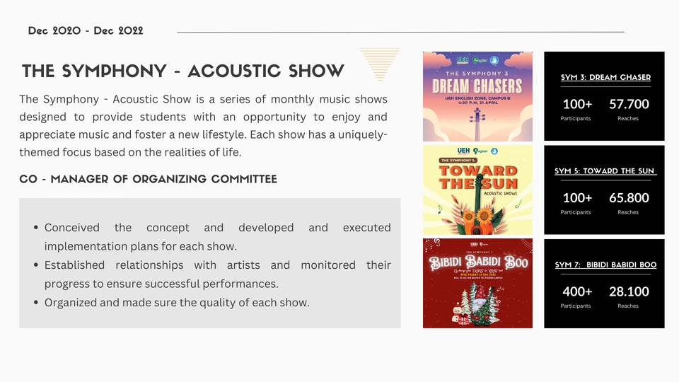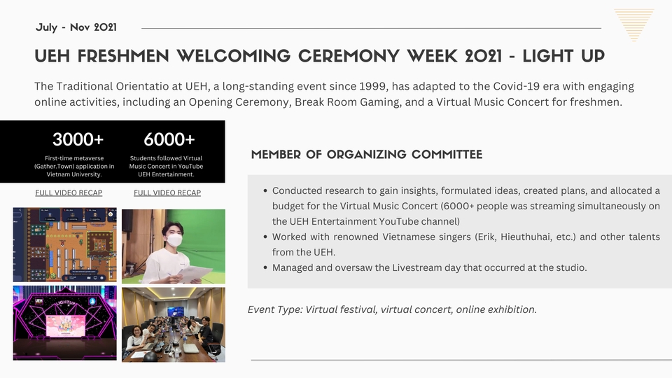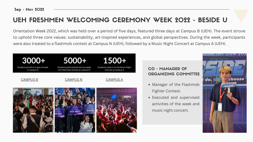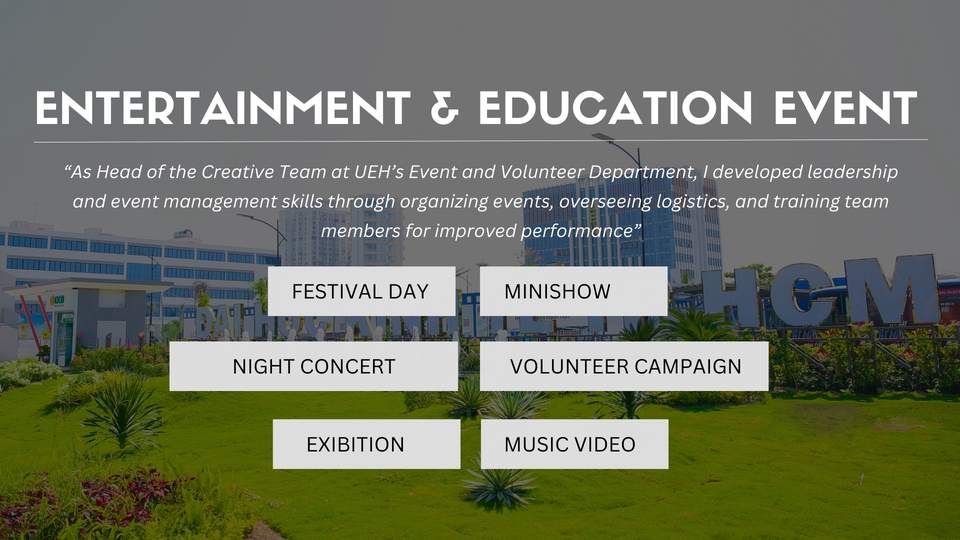 Hi, I’m Hieu – a freelance project coordinator with 3+ years of experience in event management, business programs, and creative projects. I help teams plan, execute, and deliver projects on time and within budget. I also design clean, impactful pitch decks and business presentations that align with brand identity. Detail-oriented, reliable, and creative – I’m ready to support your next project.