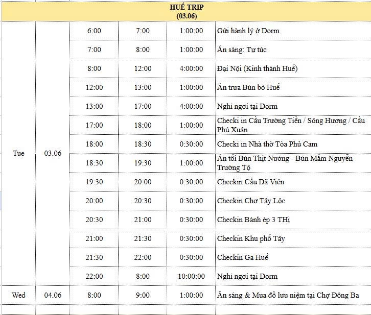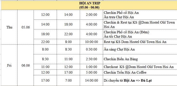 - • Hour-by-hour itinerary/ Lịch trình chi tiết theo khung giờ