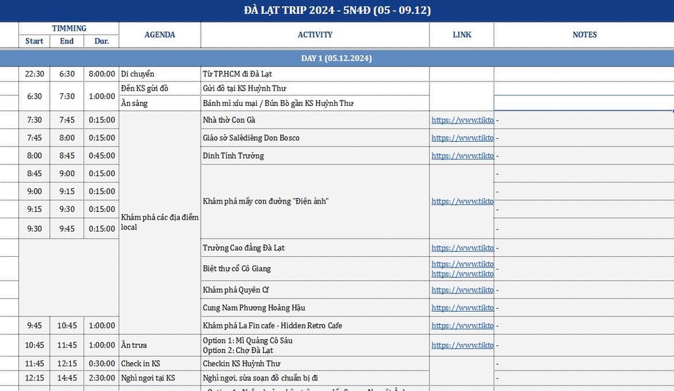 - • Day-by-day itinerary with attractions and activities / Lịch trình theo ngày