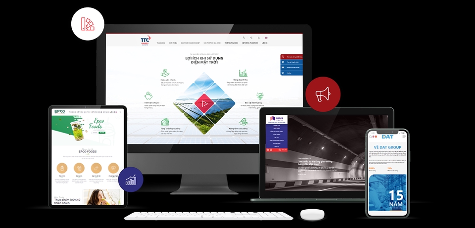 - Thiết kế Website chuẩn SEO ,Giao diện thân thiện để người dùng dễ thao tác, tối ưu hóa tốc độ tải trang và khả năng lên top Google. - Thiết kế theo lĩnh vực chuyên biệt, Bất động sản, du lịch – khách sạn, nhà hàng, thương mại điện tử, cá nhân/doanh nghiệp startup. - Website theo yêu cầu đặc thù , Hệ thống đặt phòng, đặt hàng, quản lý khách hàng, quản lý nội dung đa ngôn ngữ… - Bảo trì & nâng cấp Website, Cập nhật nội dung, vá lỗi bảo mật, tối ưu hiệu suất để website hoạt động ổn định theo thời gian. - Dịch vụ SEO & Marketing Online, Phân tích từ khóa, tối ưu on-page & off-page, quảng cáo, quản lý mạng xã hội…