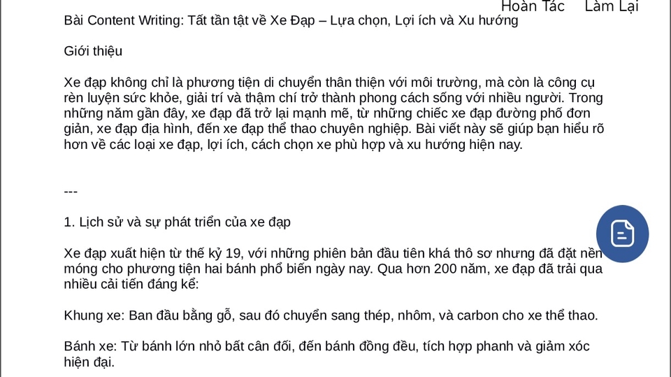viết content về thôn tin của xe đạp