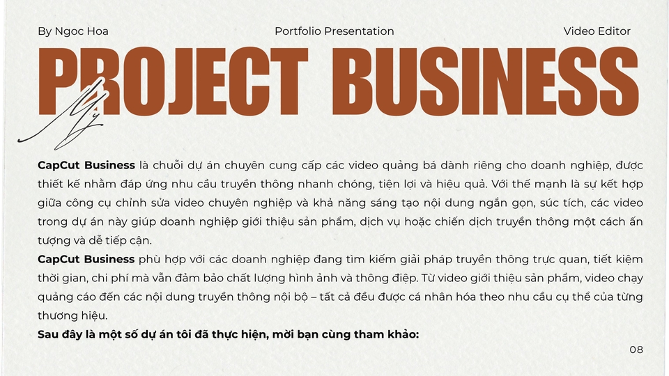 Xin chào, mình là một freelancer chuyên dựng video ngắn và dài, thiết kế template CapCut, edit vlog và các nội dung số phù hợp với xu hướng hiện nay. Với kinh nghiệm thực tế trong việc biên tập video cho nhiều lĩnh vực như du lịch, đời sống, sản phẩm, beauty, review, giải trí và giáo dục, mình tự tin có thể giúp bạn tạo ra những nội dung không chỉ đẹp mắt mà còn chạm được cảm xúc người xem. ⸻ 🔹 MÌNH CÓ THỂ GIÚP BẠN NHỮNG GÌ? 1. Dựng video ngắn – Tiktok / Reels / Shorts • Bắt trend nhanh, hiệu ứng sinh động • Lựa nhạc phù hợp, dựng theo phong cách trẻ trung, dễ viral • Cắt dựng logic, thêm phụ đề, chuyển cảnh mượt mà • Thêm hiệu ứng động, sticker, bộ lọc màu chuyên nghiệp Phù hợp với: Influencer, KOL, shop online, nhà sáng tạo nội dung, cá nhân bán hàng, thương hiệu nhỏ 2. Dựng video dài – Vlog / YouTube / Review • Biên tập nội dung mạch lạc, thu hút người xem từ đầu đến cuối • Lược bỏ đoạn thừa, tăng tính liên kết giữa các phần • Cân chỉnh âm thanh, hình ảnh, màu sắc • Hỗ trợ dựng các thể loại: du lịch, beauty, lifestyle, học tập, podcast, phỏng vấn… Phù hợp với: Vlogger, doanh nghiệp nhỏ, trung tâm đào tạo, người mới làm YouTube 3. Thiết kế template CapCut theo yêu cầu • Template dễ dùng, bắt trend, phù hợp nhiều mục đích • Giao file hoặc link có thể tùy chỉnh ngay • Hỗ trợ chèn mẫu intro/outro cho thương hiệu cá nhân Phù hợp với: Cá nhân bán hàng, sáng tạo nội dung, studio mini, người không chuyên vẫn dễ thao tác 4. Chỉnh sửa & hỗ trợ nội dung • Gợi ý cách dựng nếu bạn chưa có ý tưởng • Sắp xếp nội dung logic, có điểm nhấn • Dựng theo kịch bản có sẵn hoặc hỗ trợ góp ý kịch bản ⸻ 🔸 ĐIỂM MẠNH CỦA MÌNH ✅ Tận tâm với từng chi tiết video – không làm qua loa ✅ Đúng deadline, phản hồi nhanh, phối hợp linh hoạt ✅ Có kinh nghiệm với nội dung ngắn và dài, hỗ trợ bạn từ A–Z ✅ Làm chủ nhiều phong cách dựng: trẻ trung, tinh tế, chuyên nghiệp ✅ Giao file đúng chuẩn (mp4 Full HD trở lên, theo yêu cầu) ✅ Chấp nhận chỉnh sửa 1–2 lần nếu bạn chưa hài lòng ⸻ 🔸 QUY TRÌNH LÀM VIỆC 1. Trao đổi ý tưởng / yêu cầu 2. Báo giá & thời gian thực hiện (theo độ dài và mức độ dựng) 3. Tiến hành dựng bản nháp đầu tiên 4. Gửi bản xem trước để góp ý chỉnh sửa 5. Hoàn thiện video – gửi file gốc (nếu cần) 6. Nhận feedback & hỗ trợ sau khi bàn giao