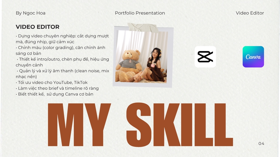 Xin chào! Mình chuyên dựng video ngắn (TikTok, Reels), video dài (YouTube, vlog, review) và thiết kế template CapCut. Cam kết đúng deadline, nội dung chỉn chu, dễ viral. Nhận chỉnh sửa theo yêu cầu, hỗ trợ tư vấn ý tưởng nếu cần. Inbox để mình hỗ trợ nhanh và gửi mẫu video bạn tham khảo nhé!