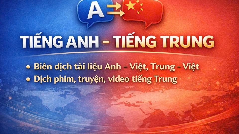 Tôi tốt nghiệp ngành Ngôn ngữ Anh Đại học Ngoại Thương TOEIC 870 và có chứng chỉ HSK 5 279/300 & HSK K cao cấp. Tôi cung cấp dịch vụ dịch thuật/viết lách tiếng Anh và tiếng Trung với tinh thần trách nhiệm & độ chính xác cao.