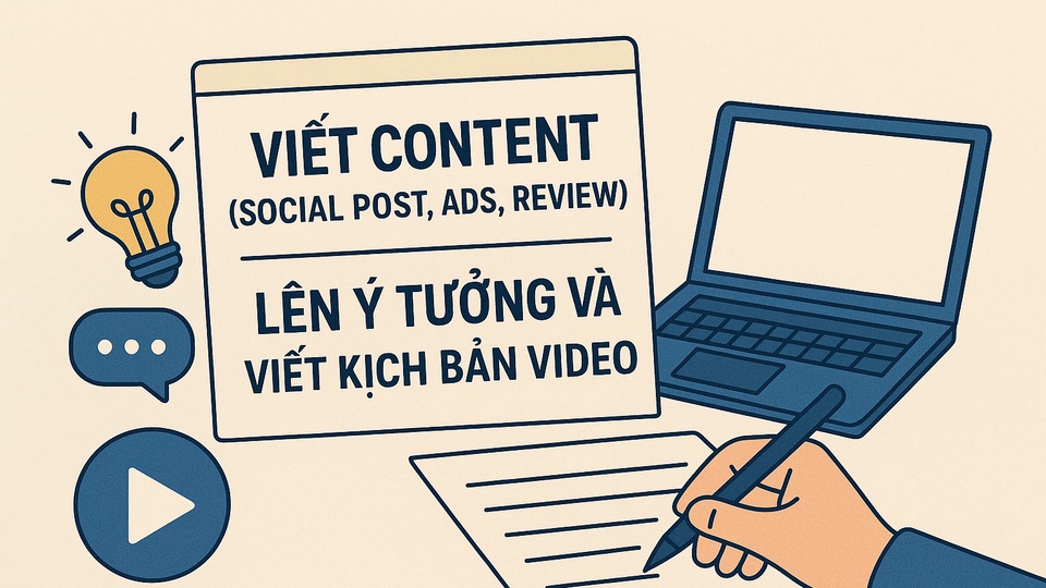 Viết Content (Social Post, Ads, Review), Lên ý tưởng và viết kịch bản Video