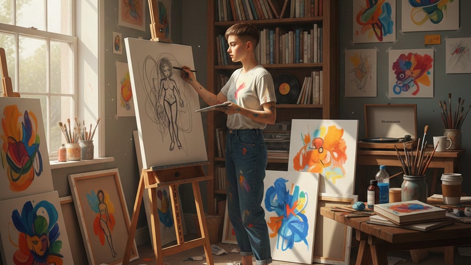 Vẽ tranh tự do (Chân dung, Hình họa, Tượng, Đô thị.)