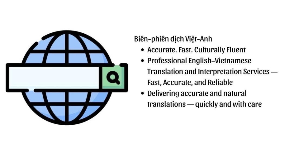 -Accurate. Fast. Culturally Fluent. -Professional English–Vietnamese Translation and Interpretation Services — Fast, Accurate, and Reliable. -Delivering accurate and natural translations — quickly and with care.