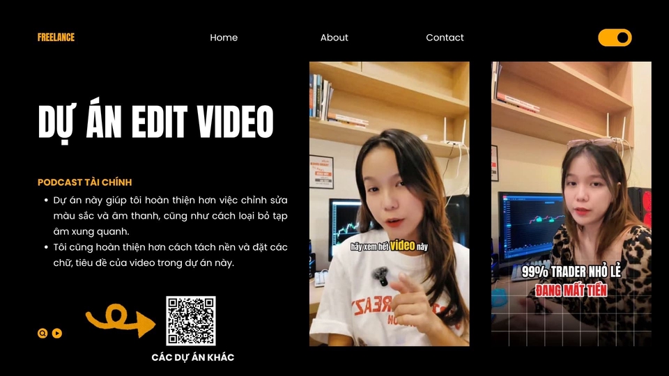 Tôi là một video editor freelance có nhiều kinh nghiệm trong việc edit video cho các cá nhân và doanh nghiệp với đa dạng các thể loại khác nhau từ faceless, talkinghead, ads.
