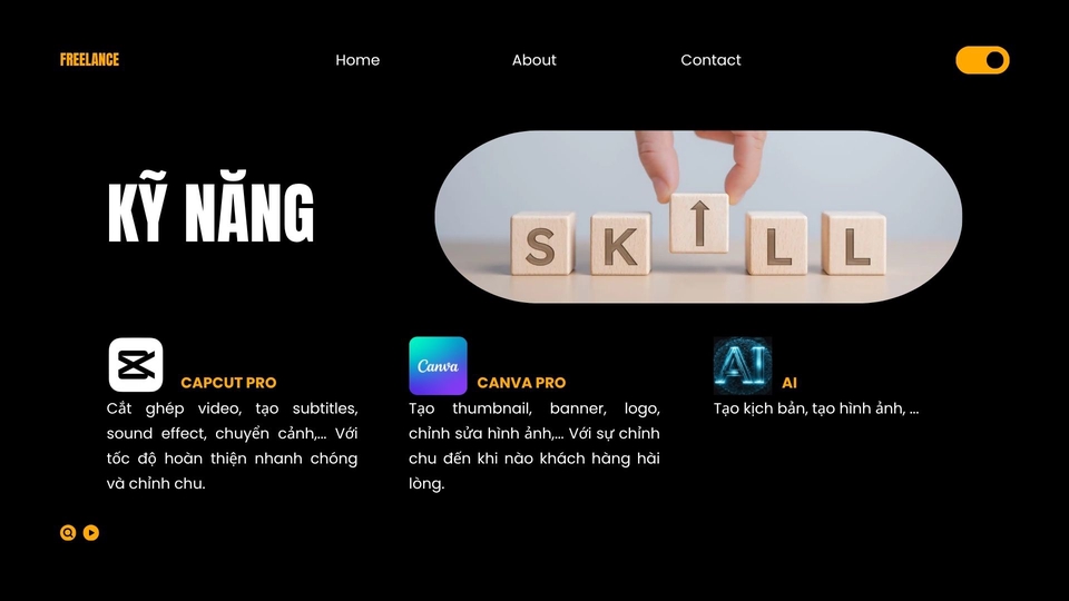 Tôi cung cấp khả năng làm video chất lượng với thời gian hoàn thành nhanh chóng với sự thông thạo các phần mềm chỉnh sửa video từ cơ bản đến nâng cao như CAPCUT, DAVINCI RESOL.