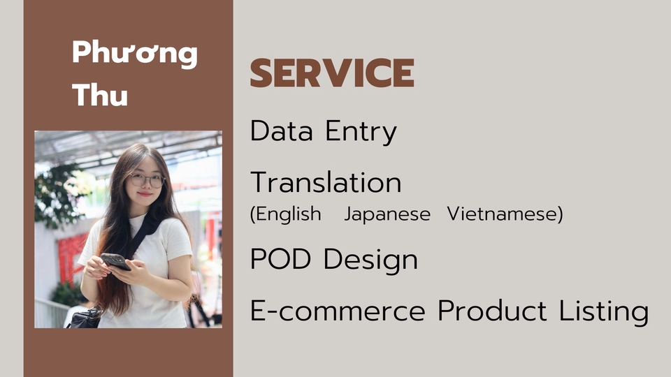 Mình có hơn 3 năm kinh nghiệm làm việc trong lĩnh vực POD (Print-on-Demand). Thành thạo các kỹ năng thiết kế cơ bản, hiểu rõ quy trình sản xuất và tối ưu sản phẩm in theo yêu cầu. Ngoài ra, mình có kinh nghiệm dịch thuật Anh – Nhật – Việt, sử dụng tiếng Anh giao tiếp cơ bản và tiếng Nhật ở trình độ tương đương N2.