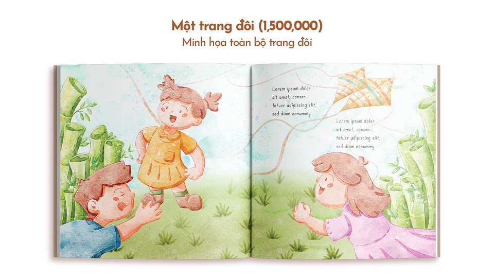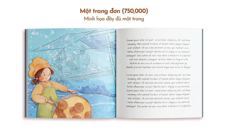 ₫9,7 triệuƯu đãi đặc biệt: giảm 25% (tiết kiệm 3.265.000₫ so với giá gốc 13.050.000₫) Gói dịch vụ Thiết kế tựa đề, nhân vật, bìa sách Minh họa nội dung (minh họa nhỏ, 1/2 hoặc full trang đơn/đôi)