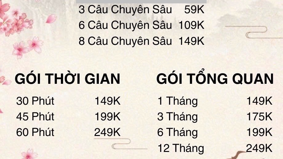 Xem chuyên sâu: Tarot - Lenormand-Tử Vi-Bài Tây -Hình thức xem văn bản hoặc ghi âm. -Nội dung xem: Tình cảm-Công Việc-Học tập-Tài Chính-Hôn Nhân.