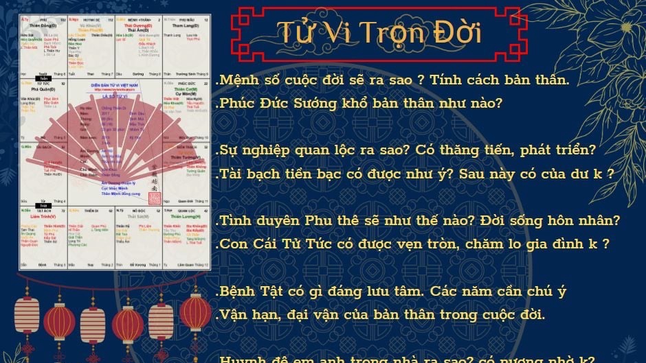 Xem chuyên sâu: Tarot - Lenormand-Tử Vi-Bài Tây -Hình thức xem văn bản hoặc ghi âm. -Nội dung xem: Tình cảm-Công Việc-Học tập-Tài Chính-Hôn Nhân.