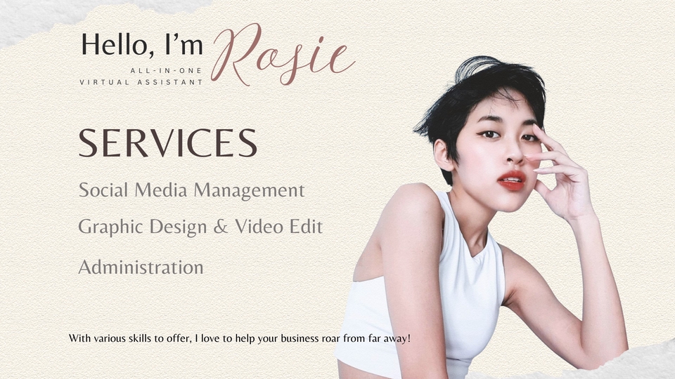 Hỗ trợ về các công việc hành chính, nhập liệu, đặt lịch họp, khách sạn, vé máy bay cho client. Có thể thiết kế graphic cơ bản trên Canva và video trên Capcut, Premỉe Pro, đăng bài, tương tác trên các nền tảng mạng xã hội...