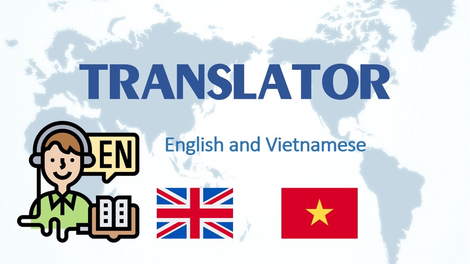 Em nhận dịch tài liệu, sách, văn bản, hội thoại,... từ Tiếng Anh sang Tiếng Việt và ngược lại. Em đảm bảo sản phẩm sát nghĩa gốc và có văn phong mượt mà. I can translate documents, books, text, posts, conversations,... from English to Vietnamese and vice versa. I make sure my work sounds as smooth as possible, and the meaning is unchanged.