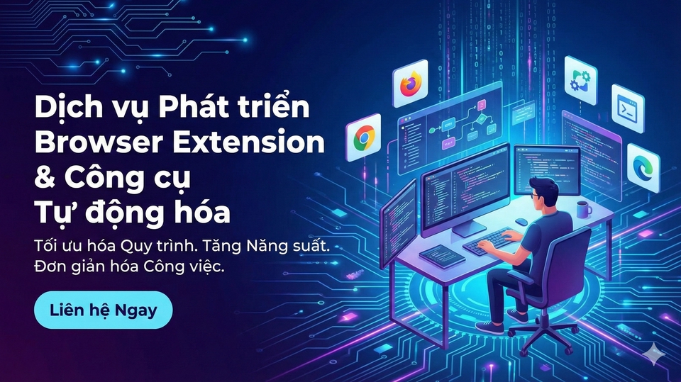 🚀 Dịch Vụ Phát Triển Browser Extension & Công Cụ Tự Động Hóa (Tích hợp AI) Trong kỷ nguyên số, việc tối ưu hóa quy trình và tiết kiệm thời gian là chìa khóa để bứt phá. Team chúng tôi cung cấp giải pháp Extension & Tool tùy chỉnh, giúp biến những tác vụ thủ công phức tạp thành những quy trình tự động chỉ trong một cú nhấp chuột. 🛠 Các Nhóm Dịch Vụ Chính * Phát Triển Browser Extension (Chrome, Edge, Safari): * Tự động hóa thao tác trên website (Auto-fill, Scraping dữ liệu). * Tích hợp tính năng AI trực tiếp vào trình duyệt (Tóm tắt văn bản, viết nội dung, phân tích dữ liệu nhanh). * Công cụ quản lý bán hàng trên các sàn TMĐT (Shopee, Lazada, Amazon). * Công Cụ Tự Động Hóa Quy Trình (Automation Tools): * Tool đồng bộ dữ liệu giữa các nền tảng (Google Sheets, CRM, Social Media). * Hệ thống bot tự động tương tác, trả lời tin nhắn tích hợp LLMs (ChatGPT, Gemini). * Tự động hóa các tác vụ lặp đi lặp lại trên máy tính (Desktop Automation). * Giải Pháp AI Chuyên Biệt: * Xây dựng trợ lý ảo riêng cho doanh nghiệp. * Xử lý hình ảnh, văn bản và giọng nói bằng AI theo yêu cầu đặc thù. 🌟 Tại Sao Nên Chọn Chúng Tôi? * Nền tảng Fullstack: Chúng tôi không chỉ làm giao diện mà còn xử lý hệ thống backend mạnh mẽ, đảm bảo tool chạy ổn định với dữ liệu lớn. * Tiên phong về AI: Tích hợp những mô hình ngôn ngữ lớn mới nhất để công cụ của bạn không chỉ "tự động" mà còn "thông minh". * Tối ưu trải nghiệm (UX): Giao diện thân thiện, dễ sử dụng cho cả những người không rành về kỹ thuật. * Bảo mật & Hiệu năng: Mã nguồn sạch, tối ưu tốc độ và cam kết bảo mật dữ liệu tuyệt đối cho khách hàng. 📋 Quy Trình Làm Việc 1. Tư vấn & Phân tích: Tiếp nhận nhu cầu, khảo sát quy trình thực tế của anh/chị. 2. Đề xuất giải pháp: Phác thảo tính năng và báo giá tối ưu theo ngân sách. 3. Phát triển & Demo: Tiến hành lập trình và gửi bản demo để khách hàng trải nghiệm sớm. 4. Tối ưu & Bàn giao: Hoàn thiện dựa trên phản hồi, hướng dẫn sử dụng và hỗ trợ kỹ thuật sau bàn giao. "Đừng để đội ngũ của bạn lãng phí thời gian vào những việc máy móc có thể làm tốt hơn."