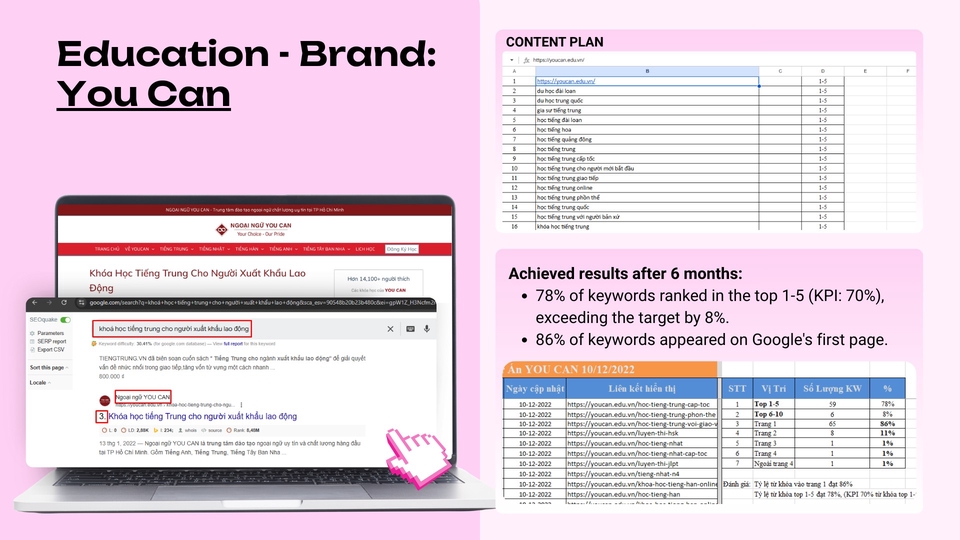 Tôi có kinh nghiệm hơn 4 năm làm content marketing đa lĩnh vực, đa nền tảng cho doanh nghiệp vừa và nhỏ: Content social: Facebook, Tiktok - Chuyên content viral, content ads và chiến lược nội dung. Content SEO: Chuyên viết Landing Page, bài viết tin tức. 99,9% bài viết được Google index và có nhiều bài viết nằm ở top 1, trang 1 của Google. Lĩnh vực: Giáo dục, F&B, B2C, B2B, nội thất,...