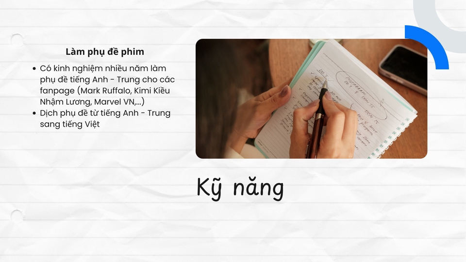 Mình có khả năng đánh máy nhanh, thành thạo tin học văn phòng, khả năng tiếng Anh và tiếng Trung tốt, biết edit video, viết kịch bản,...