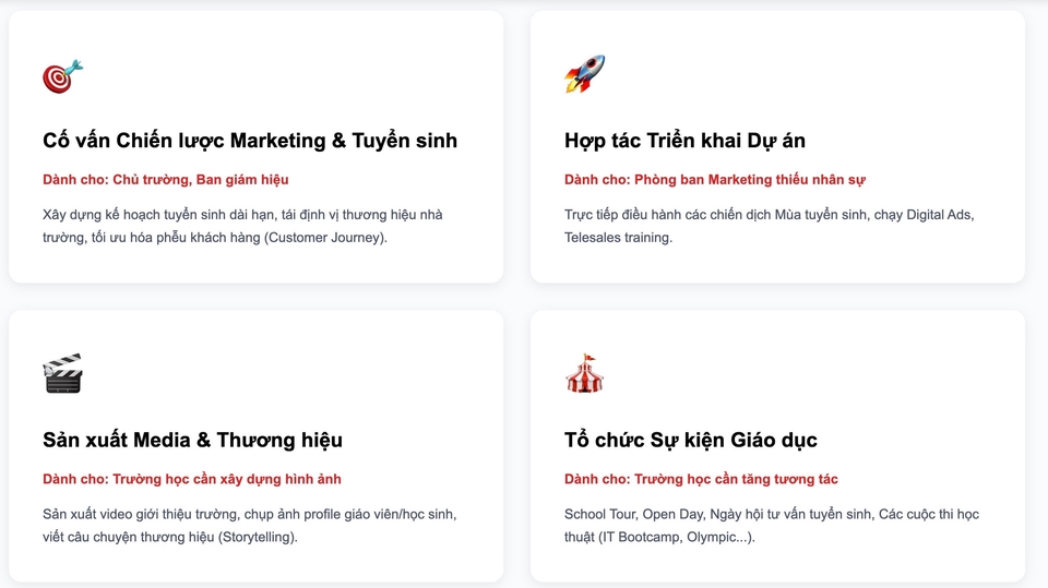 Tư vấn, triển khai dịch vụ Marketing, Truyền thông, Sự kiện, tuyển sinh mảng Giáo dục